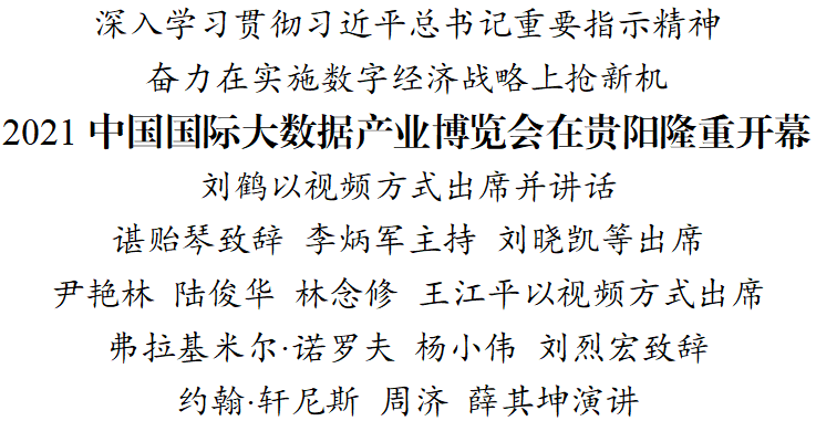 2021中国国际大数据产业博览会5月26日在贵州省贵阳市开幕。大会深入学习贯彻习近平总书记对发展数字经济和办好数博会的重要指示精神,推动在实施数字经济战略上抢新机。