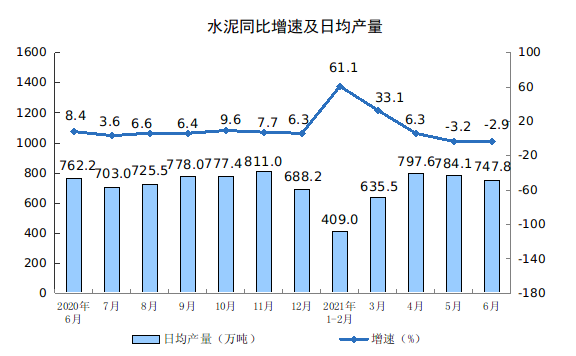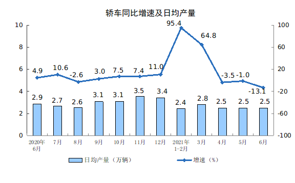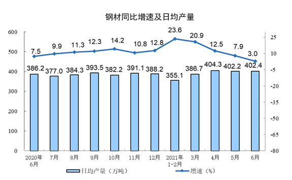 分产品看,6月份,612种产品中有410种产品产量同比增长。钢材12072万吨,同比增长3.0%;水泥22433万吨,下降2.9%;十种有色金属549万吨,增长8.0%;乙烯233万吨,增长31.1%;汽车203.8万辆,下降13.1%,其中,新能源汽车27.3万辆,增长135.3%;发电量6860亿千瓦时,增长7.4%;原油加工量6082万吨,增长5.1%。