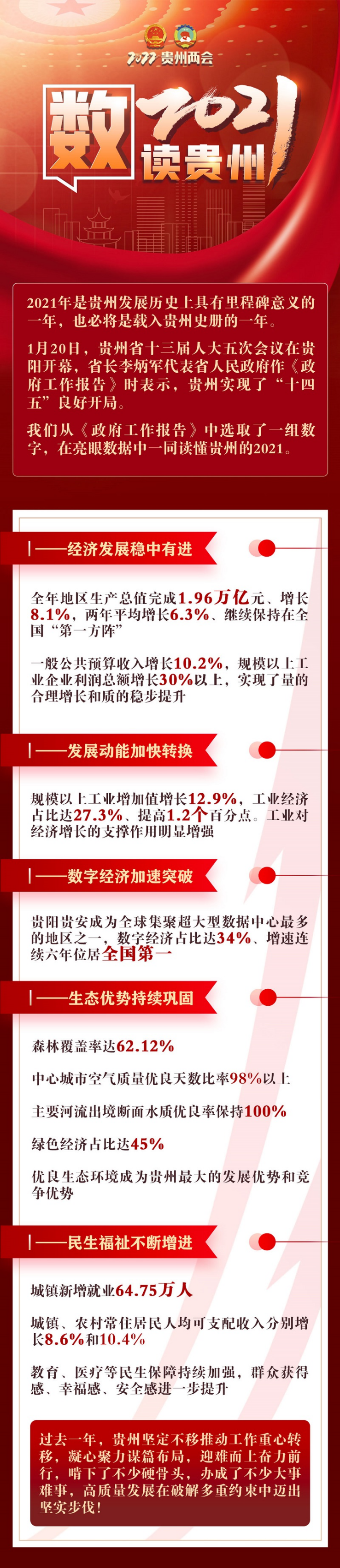 我们从《政府工作报告》中选取了一组数字,解读贵州如何实现了“十四五”的良好开局,在亮眼数据中一同读懂贵州的2021。