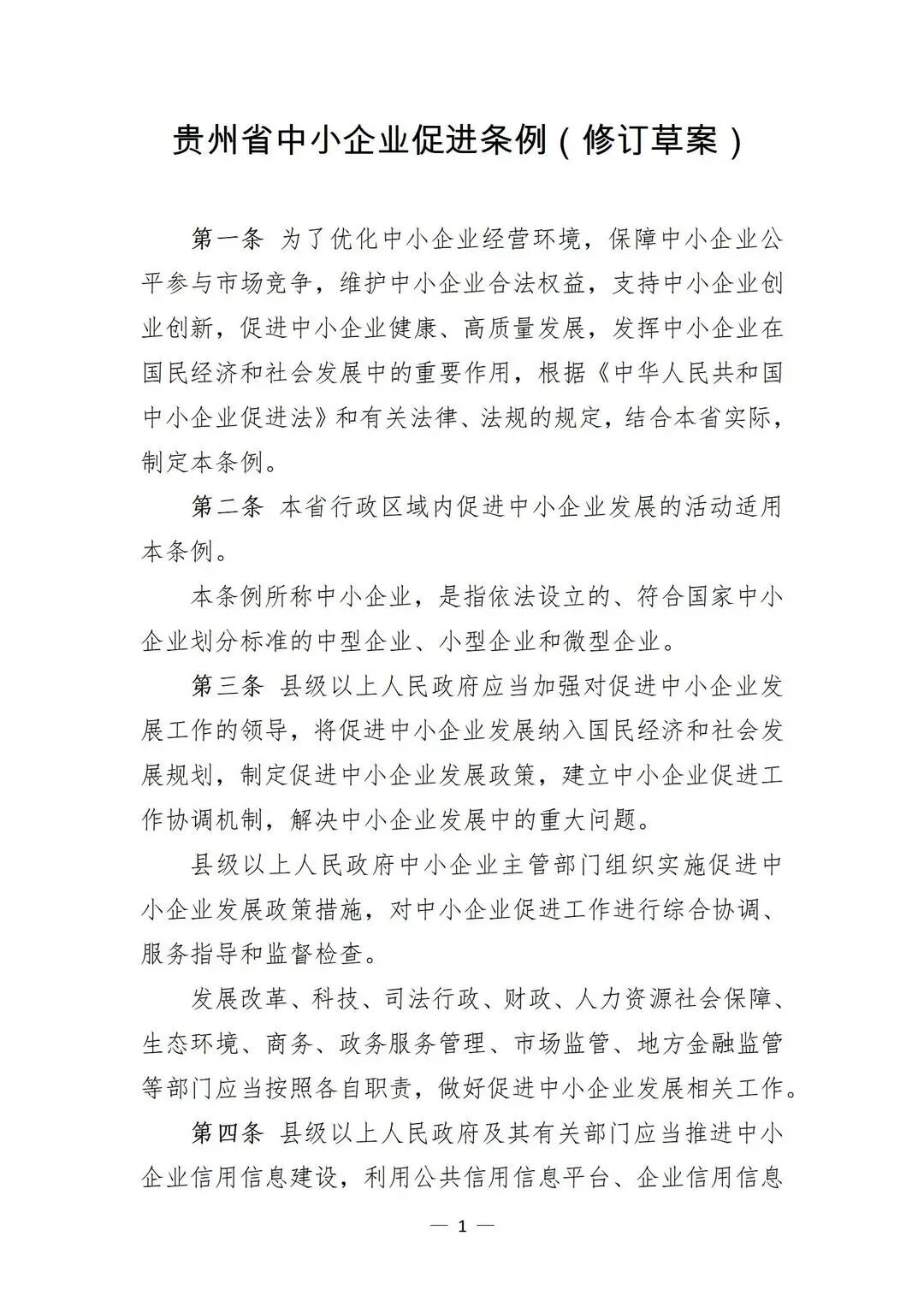 为优化中小企业经营环境,保障中小企业公平参与市场竞争,促进中小企业健康、高质量发展,根据《中华人民共和国中小企业促进法》和有关法律、法规的规定,结合本省实际,我厅起草了《贵州省中小企业促进条例(修订草案)》,现向社会公开征求意见。如有意见建议,请于2022年3月11日前反馈省工业和信息化厅产业政策与法规处。