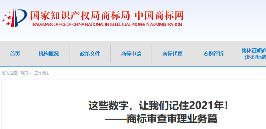 2021,这些成绩来之不易!2022,朝着目标继续奋进!在知识产权局党组的坚强领导下,商标局不断巩固提高党史学习教育成效,聚焦商标审查主责主业,持续深化商标改革,扎实推进队伍建设,推动商标事业不断迈上新台阶,以更加优异的成绩迎接党的二十大胜利召开。