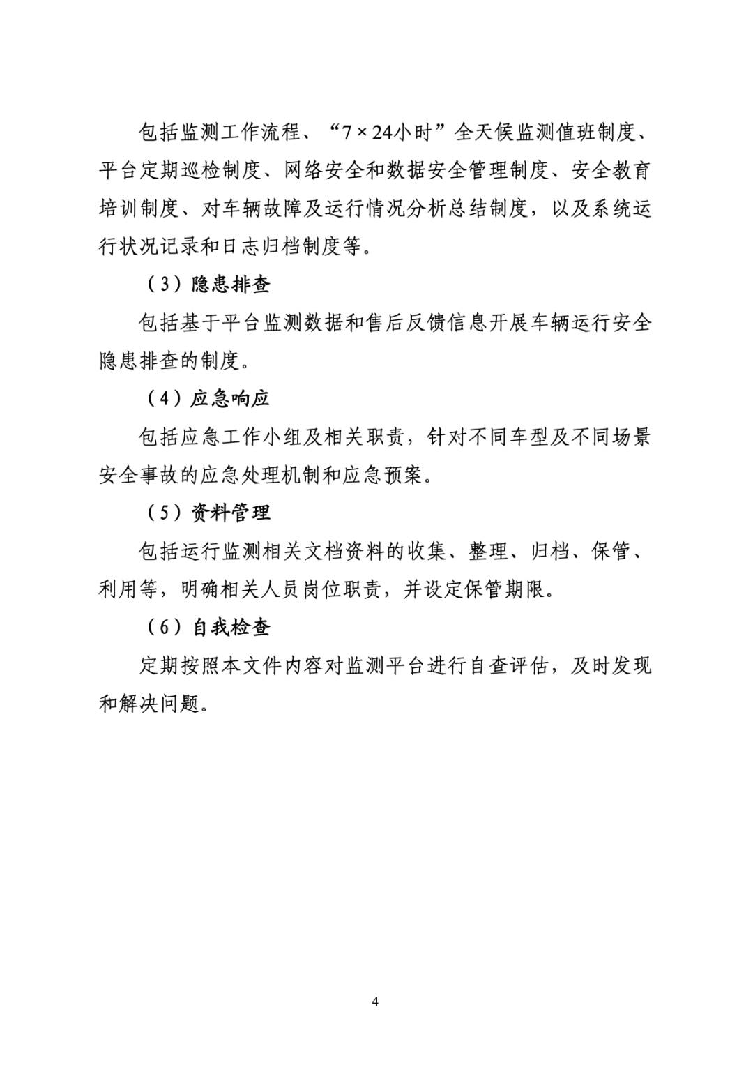 (九)建立隐患车辆排查机制。鼓励企业加强车辆运行安全状态隐患排查,及时跟踪和确认长时间离线车辆的安全状态,妥善处理大面积聚集停放、频繁报警等存在安全隐患的车辆。