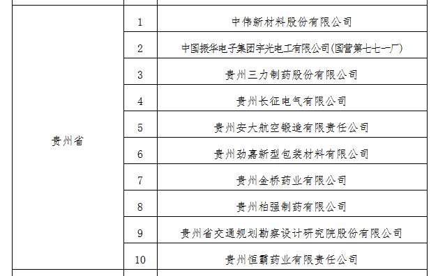 2022年新确定的国家知识产权示范企业名单(贵州)