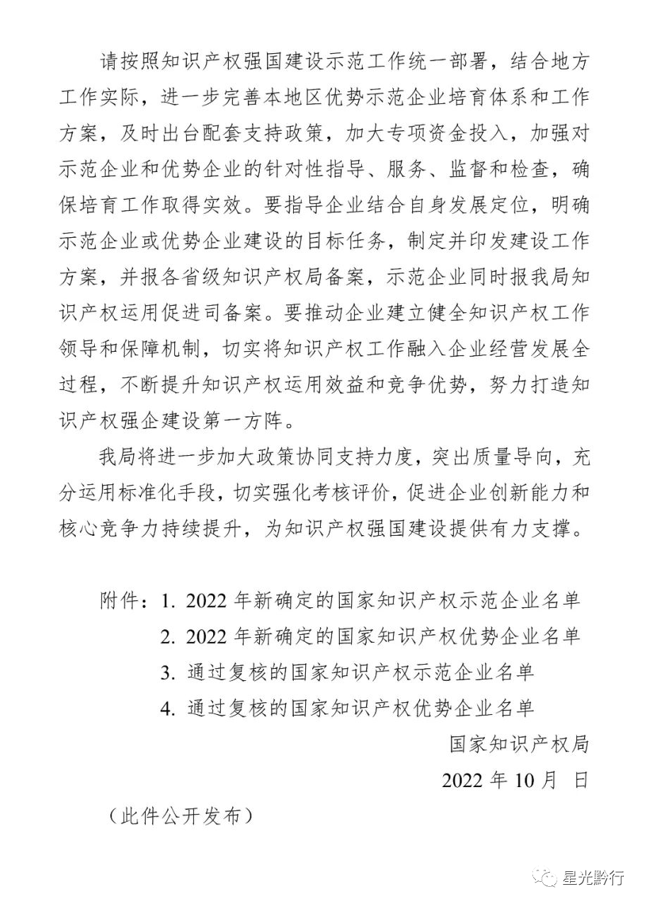 附件:国家知识产权局关于确定2022年新一批及通过复核的国家知识产权示范企业和优势企业的通知(附名单).wps