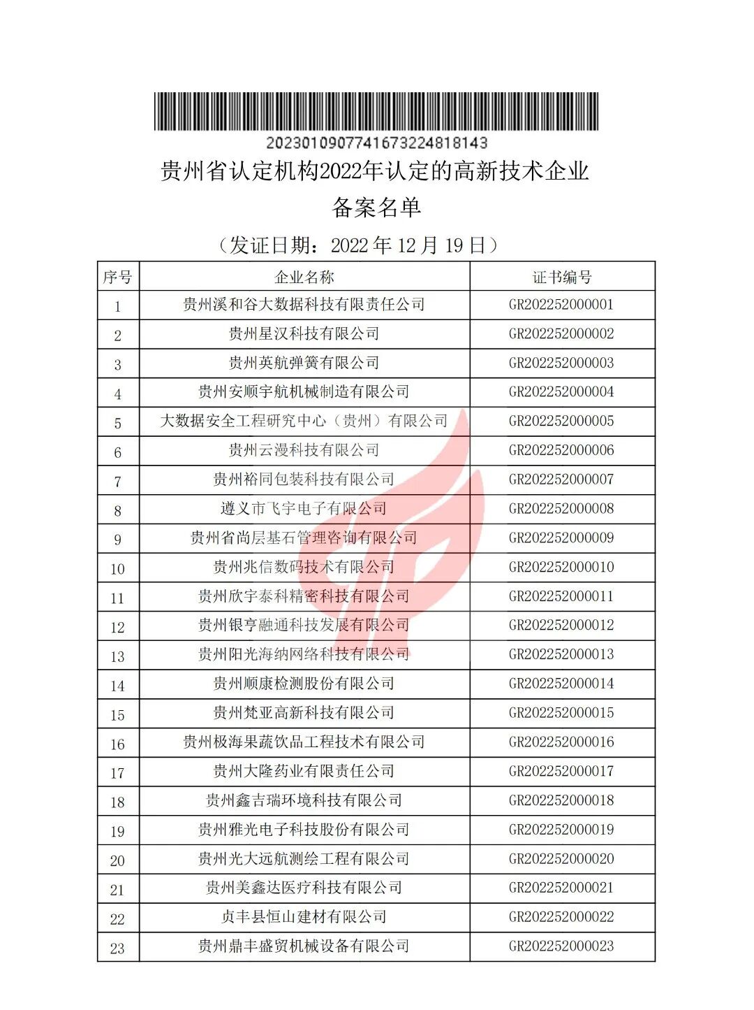 附件:贵州省认定机构2022年认定的高新技术企业备案名单