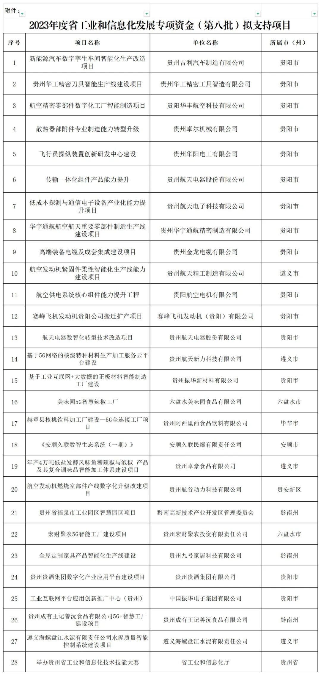 2023年度贵州省工业和信息化发展专项资金(第八批)拟支持项目公示