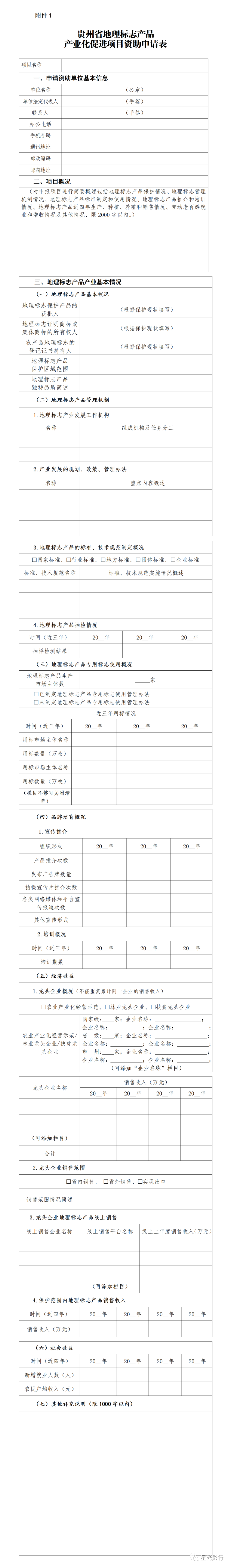 (一)《贵州省地理标志产品产业化促进项目资助申请表》。